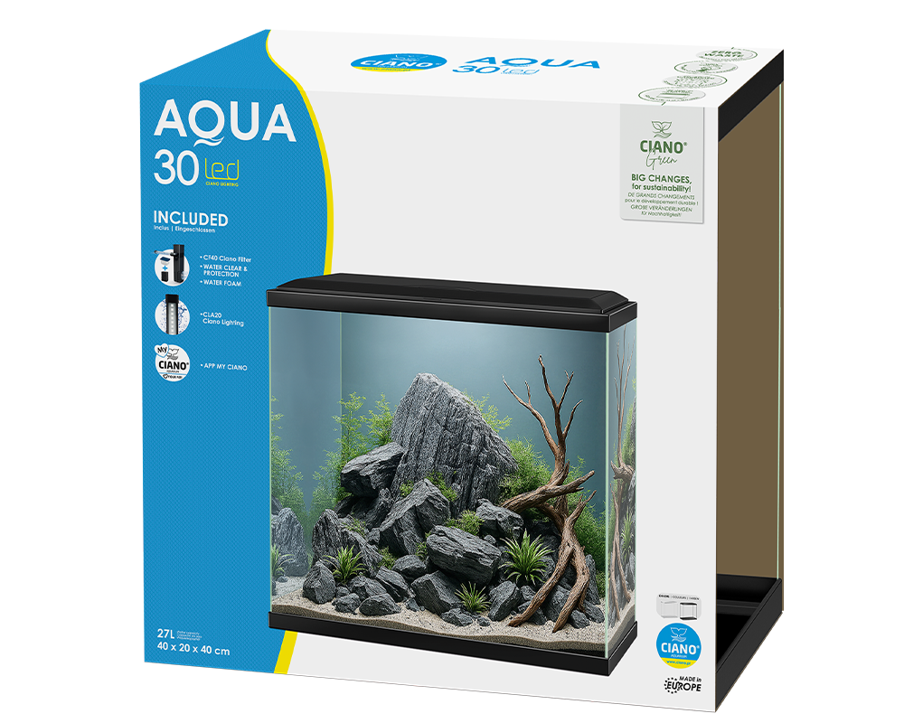 Das Aqua 30 verfügt über das Ciano® CLA20, ein zertifiziertes Niederspannungs-Beleuchtungssystem für umfassende Sicherheit und eine garantiert natürliche Beleuchtung mit geringem Stromverbrauch.