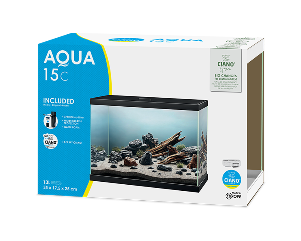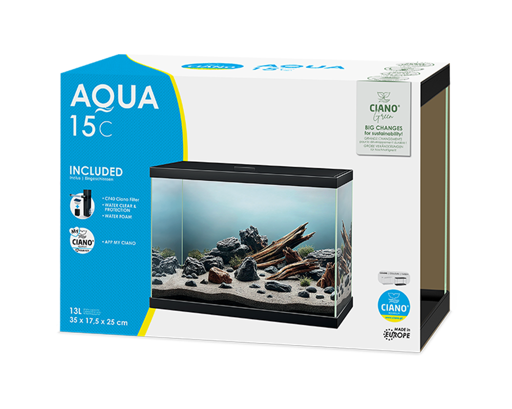 Para facilitar el mantenimiento, el Aqua 15C está equipado con el sistema de filtración interna Ciano® CF40, optimizado para reducir el estrés de los peces y cuenta con una barra de pulverización que permite una distribución más uniforme del agua y una mayor oxigenación.