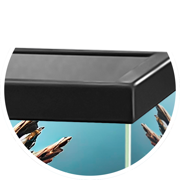 Con acabados perfectos y robustos, el Aqua 15C se destaca por su elegancia y seguridad, con marcos de plástico a prueba de golpes y una tapa protectora para evitar que los peces salten.