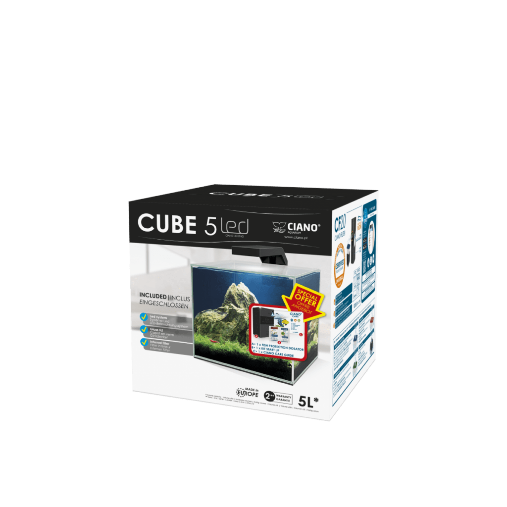 El CUBE 5 es un pequeño acuario de cristal de fácil utilización, que se adaptará fácilmente a cualquier estancia de su hogar.