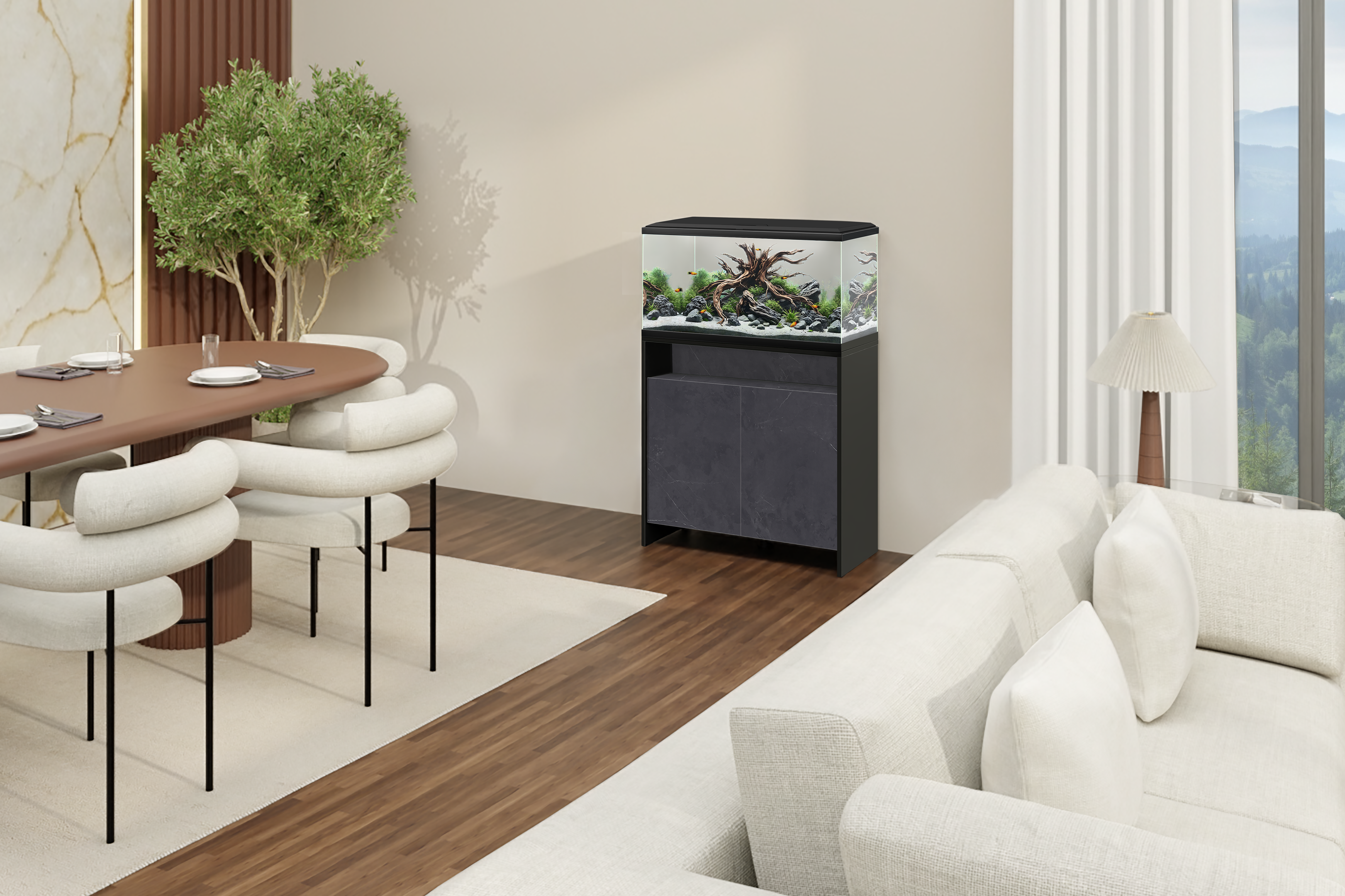 El mueble Aqua 60 ha sido desarrollada con materiales de alta calidad, garantizando durabilidad y estabilidad en el día a día. Siguiendo las mismas líneas de los acuarios Aqua 60 y Aquarium 60, forma un conjunto armonioso. Con dos puertas frontales, permite organizar accesorios y objetos de manera discreta, manteniendo el espacio limpio y equilibrado. Ideal para quienes valoran la elegancia y la practicidad en cada detalle.