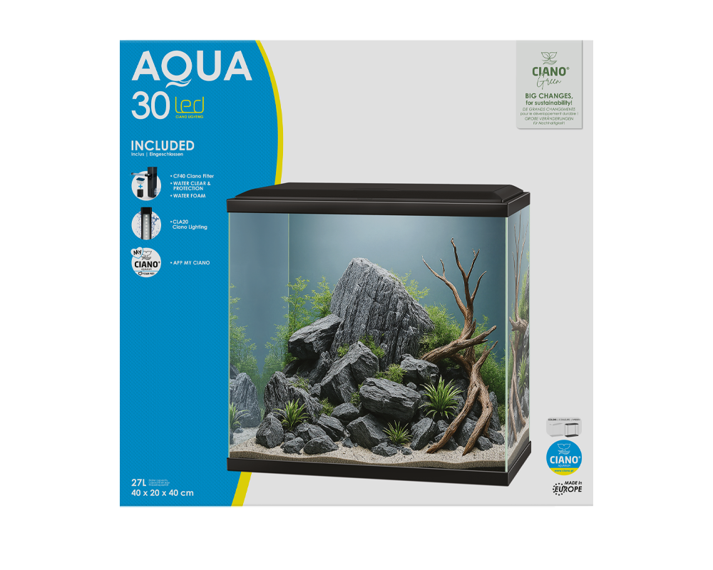 Para uma fácil manutenção o Aqua 30 é equipado com o sistema de filtração interno CF40 Ciano®, otimizado para um menor stress dos peixes e com uma barra de pulverização que permite uma distribuição mais uniforme da água e o aumento da oxigenação.
